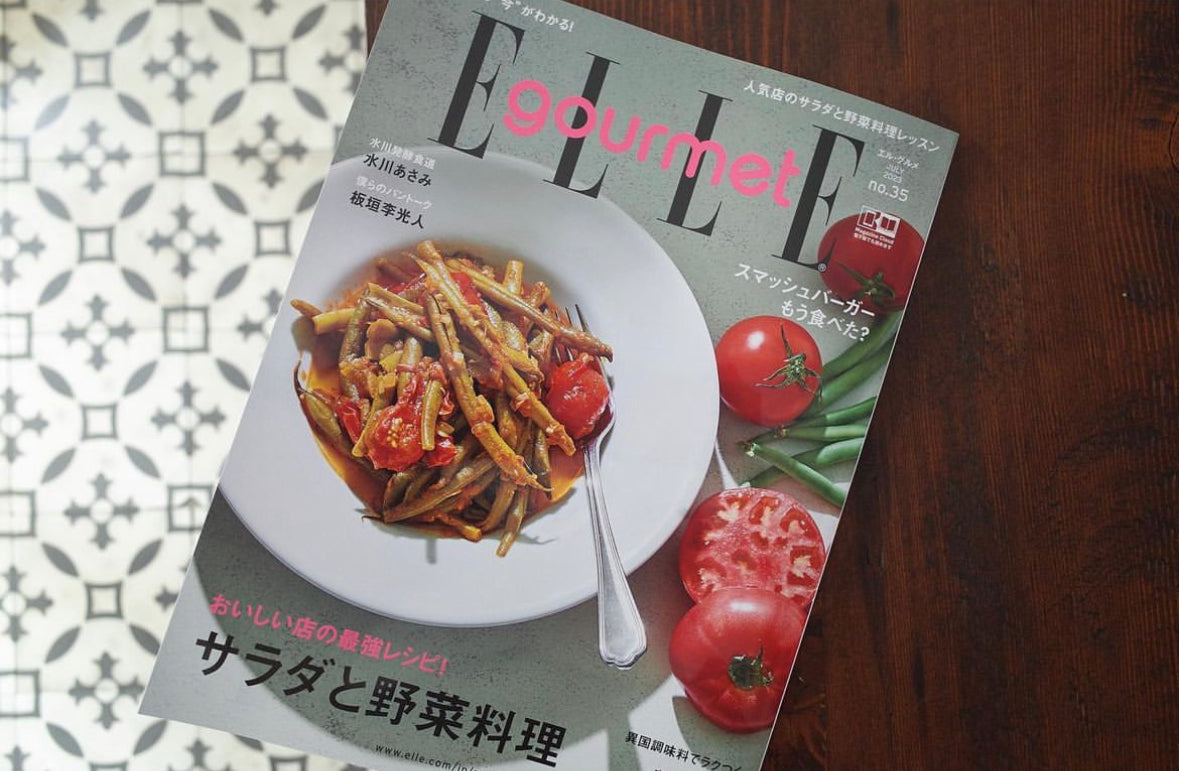 定番の野菜料理のレシピをご紹介させていただきました。パリ在住時からELLE Onlineにて、ひたすら毎日の夜ご飯を綴るというブログを10年間続けさせていただきました。そのブログをずっと読んでいてくれた方々が、私の最初の料理教室に来てくれました。私の料理人生において、「ELLE」という媒体は本当にご縁を繋げてくれるメディア、そんな存在でした。お声がけくださった編集者の宇多さん、素敵なページに仕上げて頂きありがとうございました。