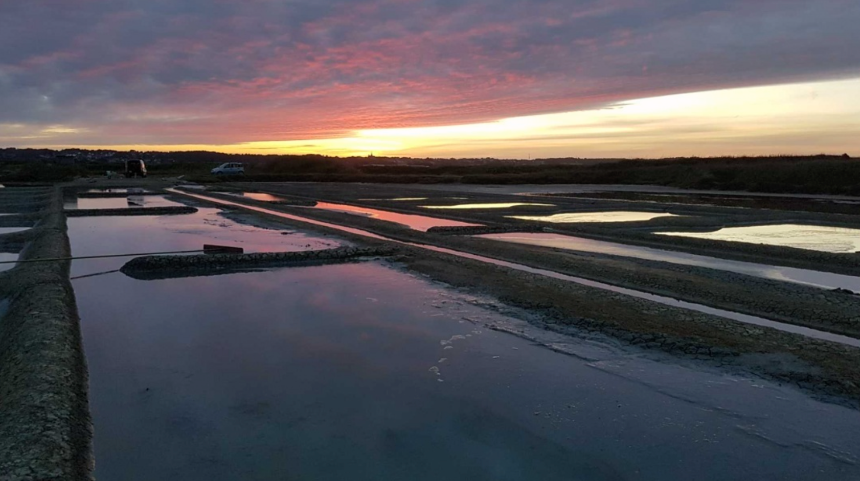 夏の午後、暖かな微風と結晶池の水面とのあいだに十分な温度差が生まれると、水面に繊細な結晶が現れます。それがフルール・ド・セルです。